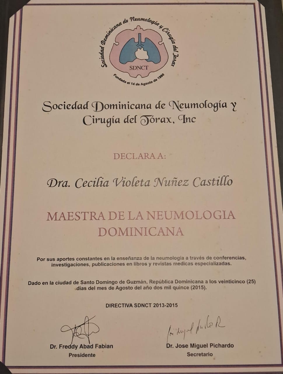 - Ex Presidenta de la Sociedad Dominicana de Neumología y Cirugía de Tórax 1983-1984.